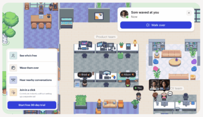 Gather (gather.town) is een online omgeving waarin je elkaar ontmoet in een 2D-wereld met avatars. Je loopt rond, praat spontaan met mensen in de buurt en kunt samen werken in vaste of informele settings.