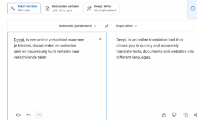 DeepL is een online vertaaltool waarmee je teksten, documenten en websites snel en nauwkeurig kunt vertalen naar verschillende talen.